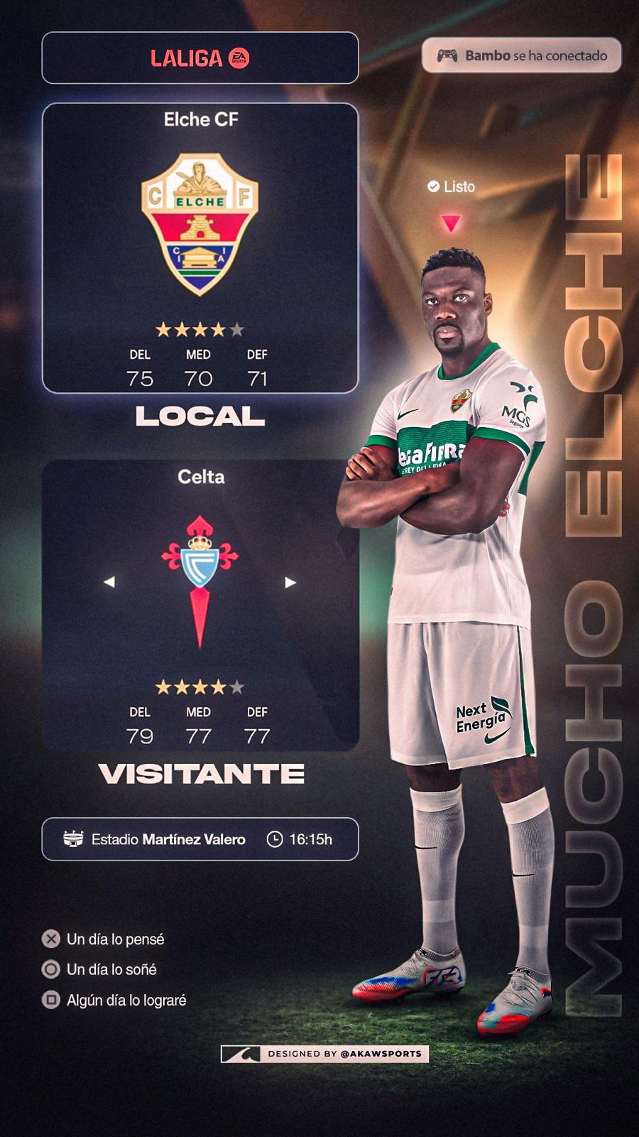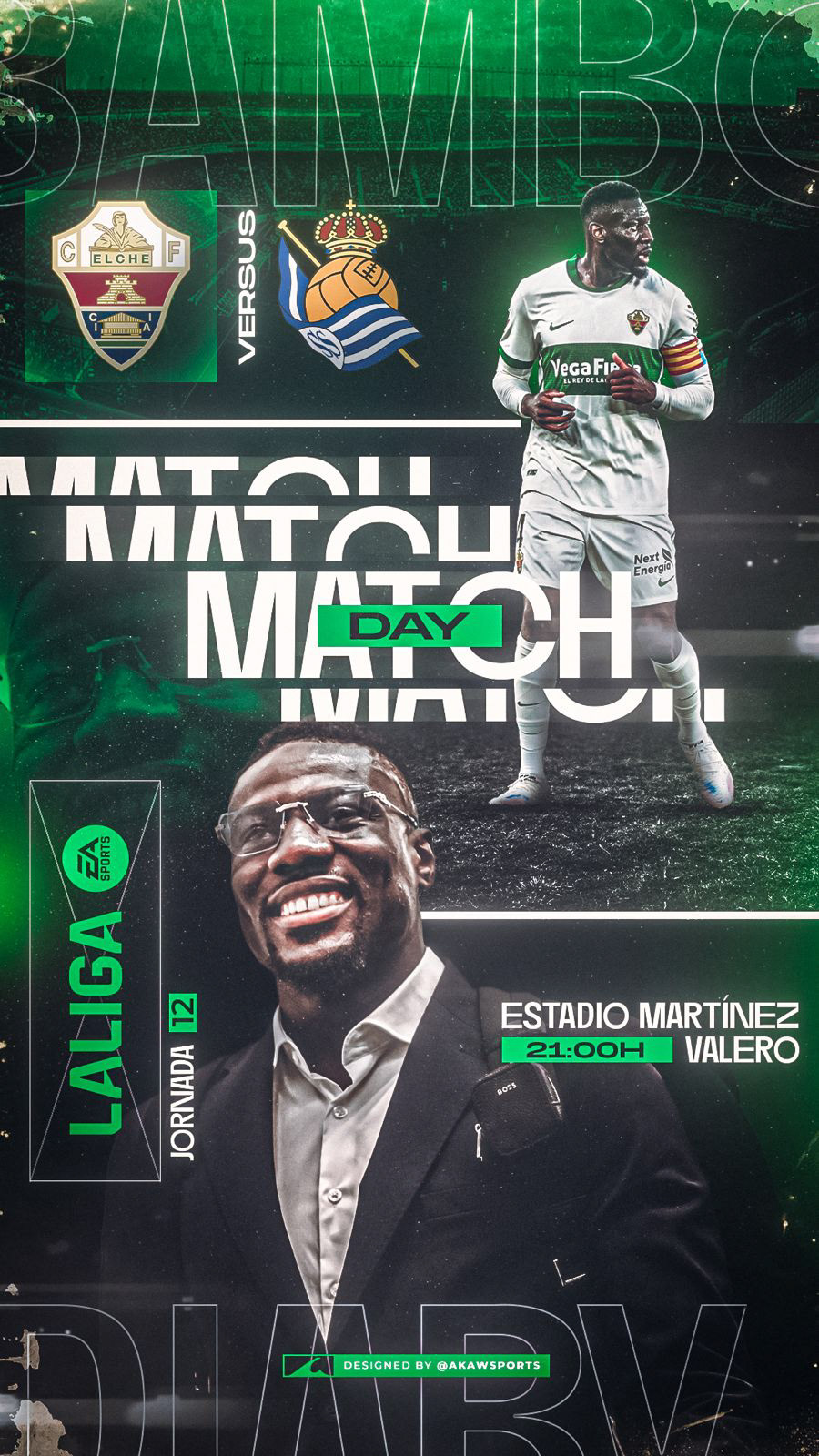 🡪 Official game day designs for Bambo Diaby (Elche CF, Sheffield Wednesday and Preston North End FC) to highlight his presence in social media and the importance of his figure in the club.