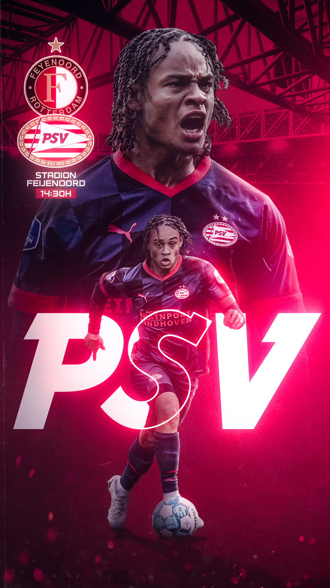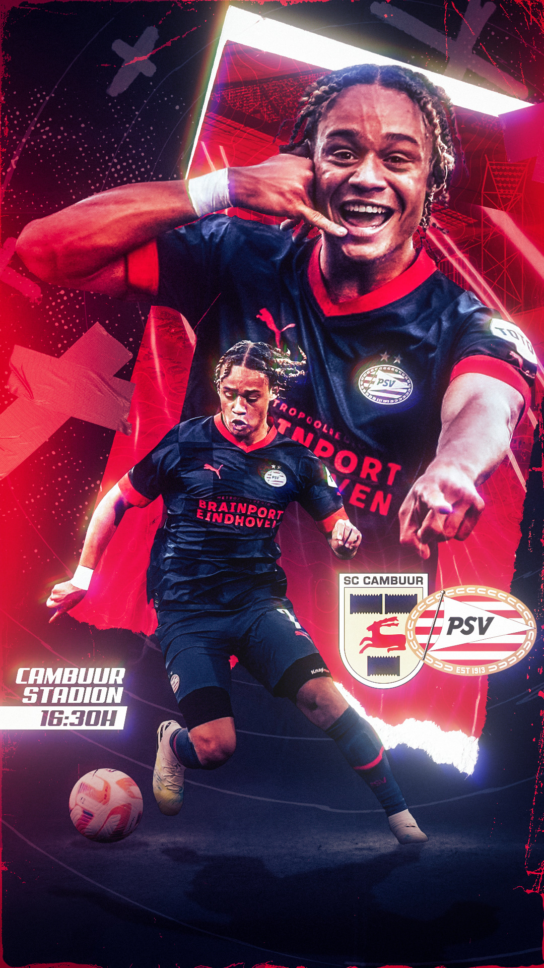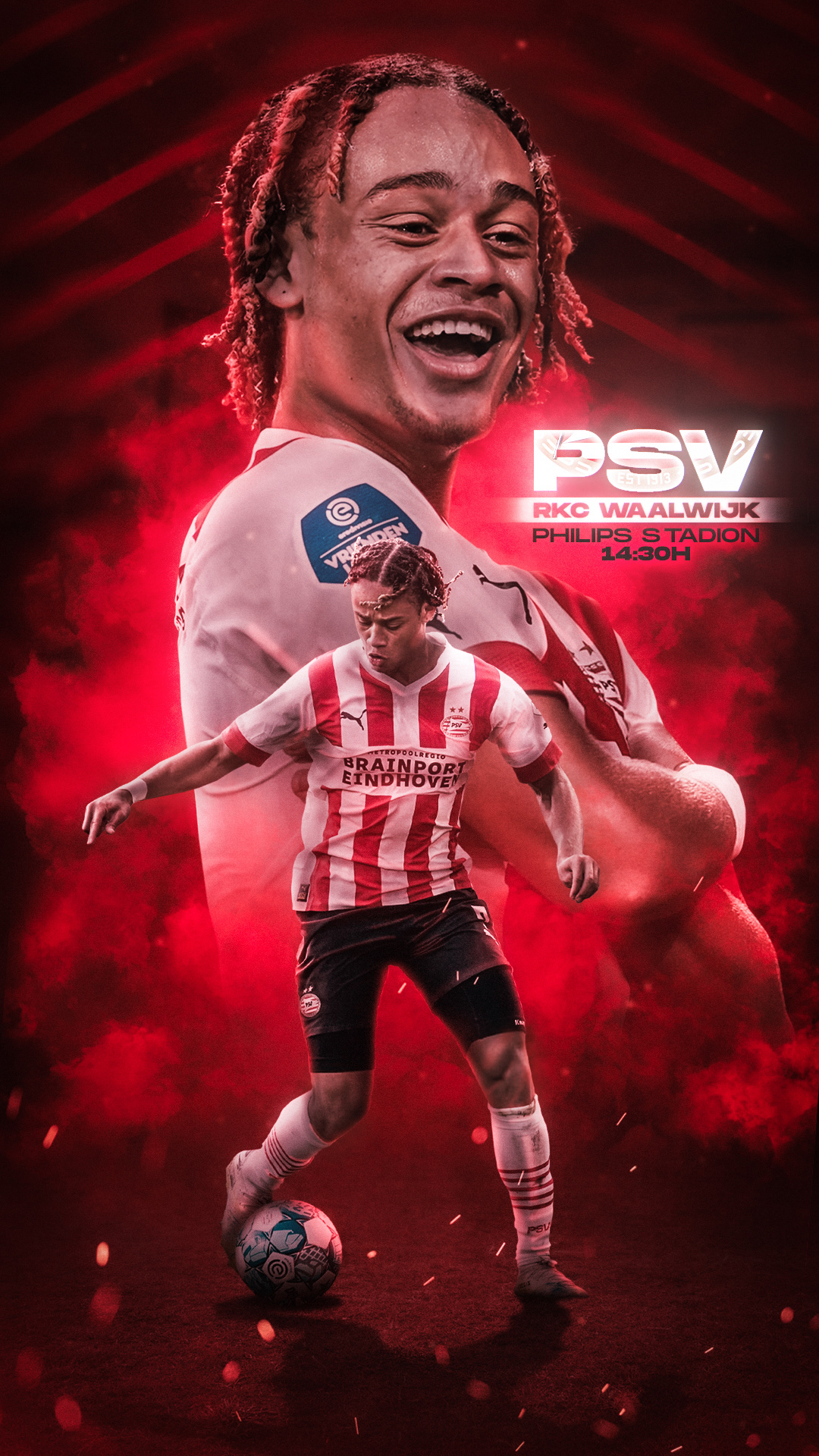 🡪 Official matchday graphics for Xavi Simons during his breakout season 2022-2023 with PSV. Celebrating his emergence as a rising star in European football, these designs highlight his impressive skills and capture the excitement of a new football talent.