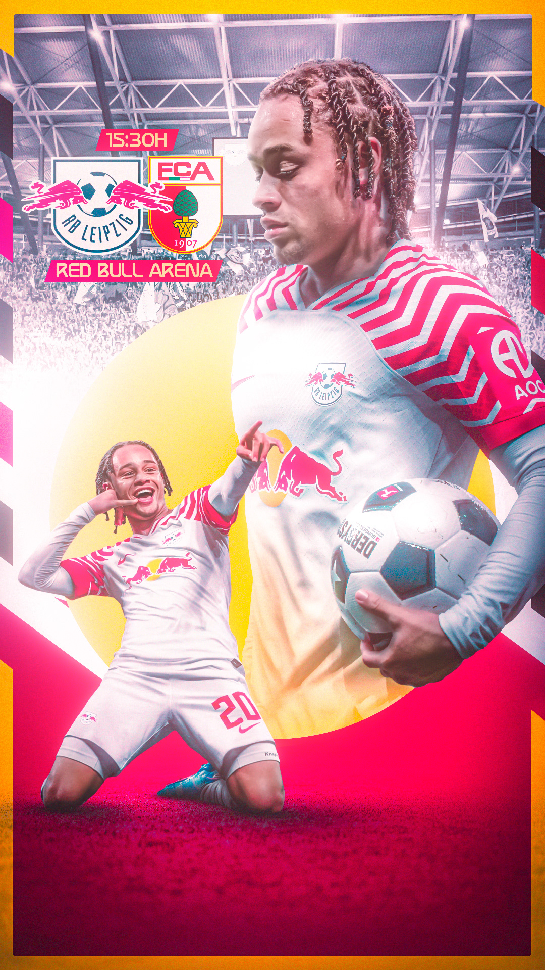 🡪 Official matchday designs for Xavi Simons during the 2023/24 season at RB Leipzig. While capturing the energy and spirit of his matches in RB Leipzig's colors, these visual pieces help to build a deeper connection with his followers on each game day.